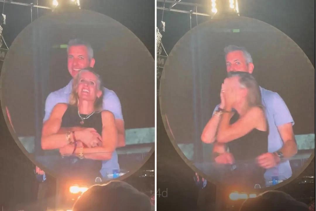 Astronomer首席执行官(CEO)安迪·拜伦搂抱公司人力资源总监(HR)克里斯汀·卡伯特 图源:美媒