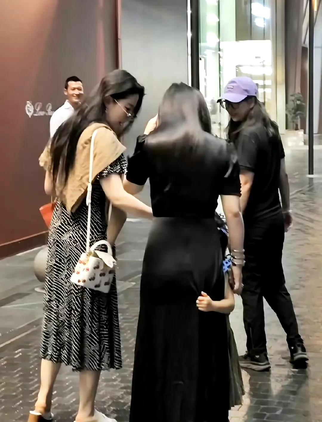 近日,有网友在三里屯偶遇刘亦菲与朱珠一家。