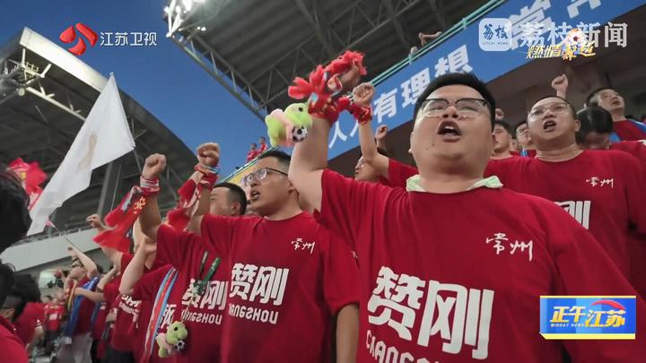 荔枝新闻中心记者范洁萍说:“此刻常州对阵徐州的比赛正在进行中,目前常州0比2落后于徐州,球迷们一直期待的一粒进球至今还没有实现。不过球迷还是保持很高的热情,常州队球员们在场上依然拼搏着,不抛弃不放弃,这就是足球的精神。”