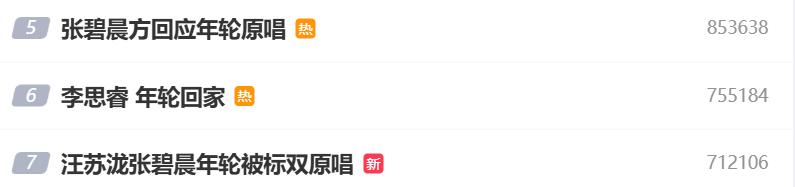 日,有网红博主发表言论称“张碧晨是《年轮》唯一原唱”,引起网友热议。