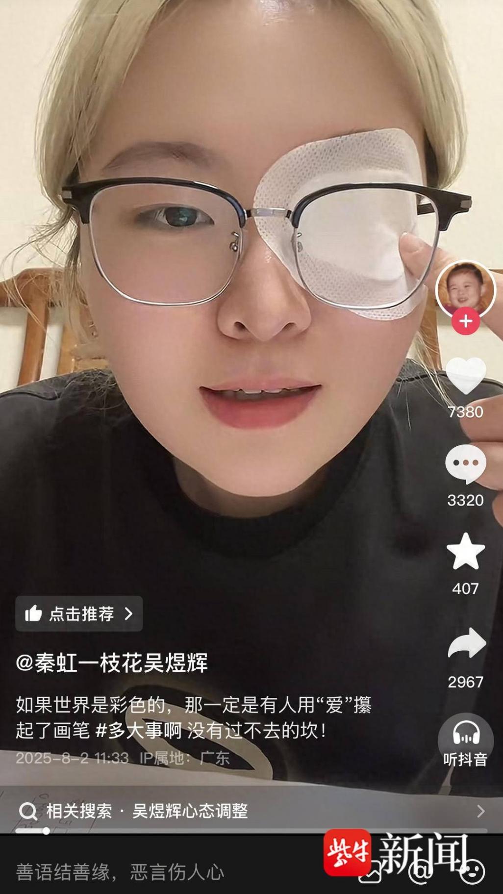 “我的右眼失明了,基本上可以确诊为多发性硬化。这个病全球发病率只有0.03%,很不幸被我赶上了……”在视频中,吴煜辉表示,自己需要终身注射单抗药物来控制病情,否则病情容易复发,进而可能导致瘫痪、双眼失明。“我的音乐梦想也不得不暂时搁置了。在25岁这样的年纪,被剥夺了追求美丽和梦想的权利,要说不痛苦是假的。”