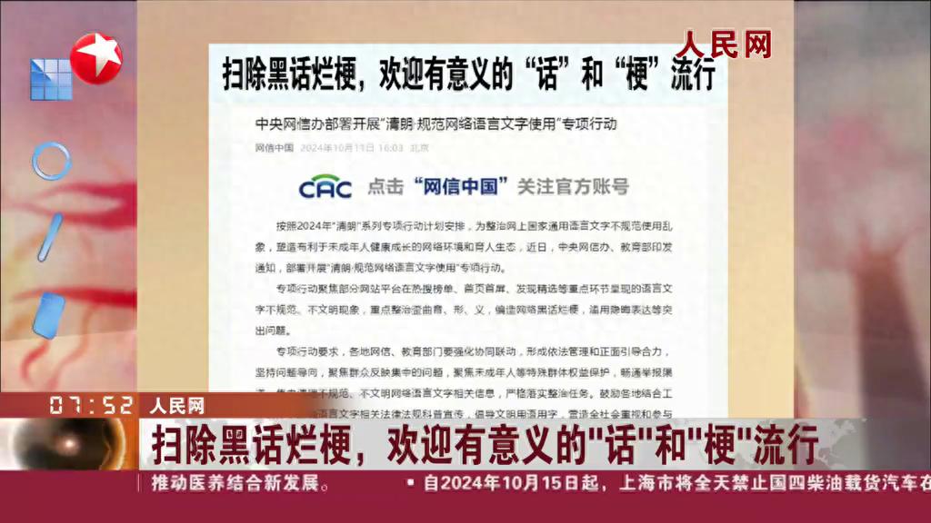 近日中央网信办、教育部印发了通知,部署开展专项行动,聚焦网上语言文字不规范、不文明的现象,重点整治歪曲、音形意、编造网络黑化烂梗、滥用隐晦表达等突出的问题。