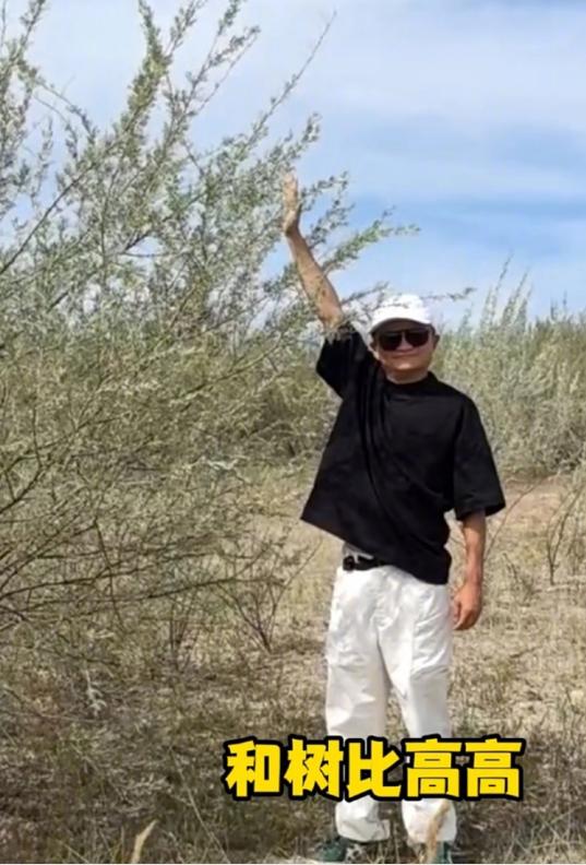 探访期间,马云还站在一棵树旁与树比高。