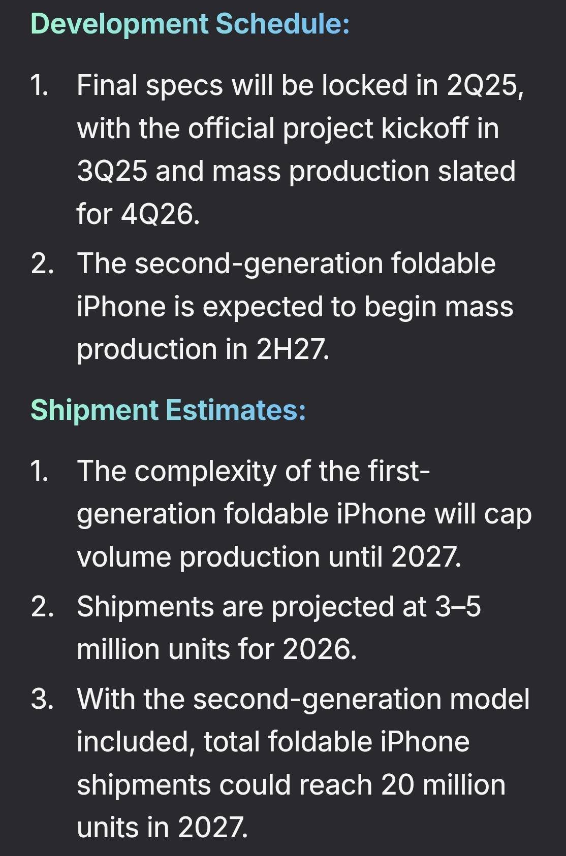 据天风国际分析师郭明錤的预测文章可知,2026年iPhone折叠屏手机出货量将达800-1000万台,2027年有望增长至2500万台。而iPhone Air作为先行者,或许承担着市场试探和技术验证的双重使命,其市场反馈会给iPhone折叠屏手机的定价策略及市场推广提供重要参考。
