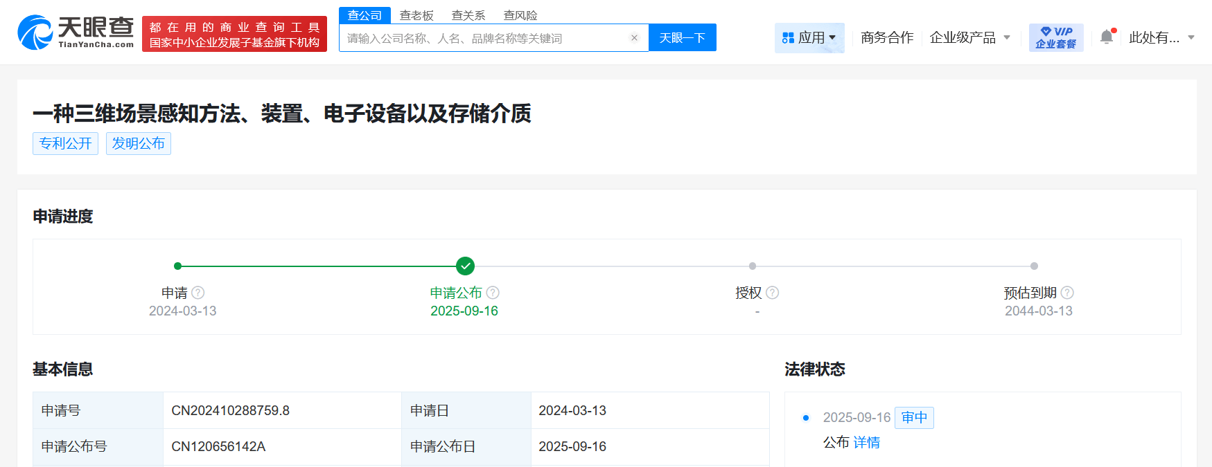 App显示,近日,小米汽车科技有限公司申请的“一种三维场景感知方法、装置、电子设备以及存储介质”专利公布。