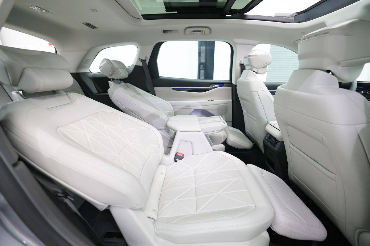 另外,2026款锐界L继续提供2-2-3座椅布局,二排为两个独立座椅,通道宽度200mm,第三排进出轻松自如。部分车型还配备二排腿托及“一键舒躺模式”,可以调节至接近零重力的坐姿,强化了乘坐体验。
