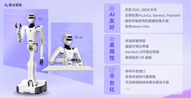 首发半身机器人S1-U,可灵活部署、批量定制;首发超远程遥操作方案,已成功在跨省、跨国的真实客户场地中完成能力验证,打造可靠的「远程专家分身」;AI模型DuoCore支持爆米花制作、饮料售卖、生物医药实验等全自主商业服务。