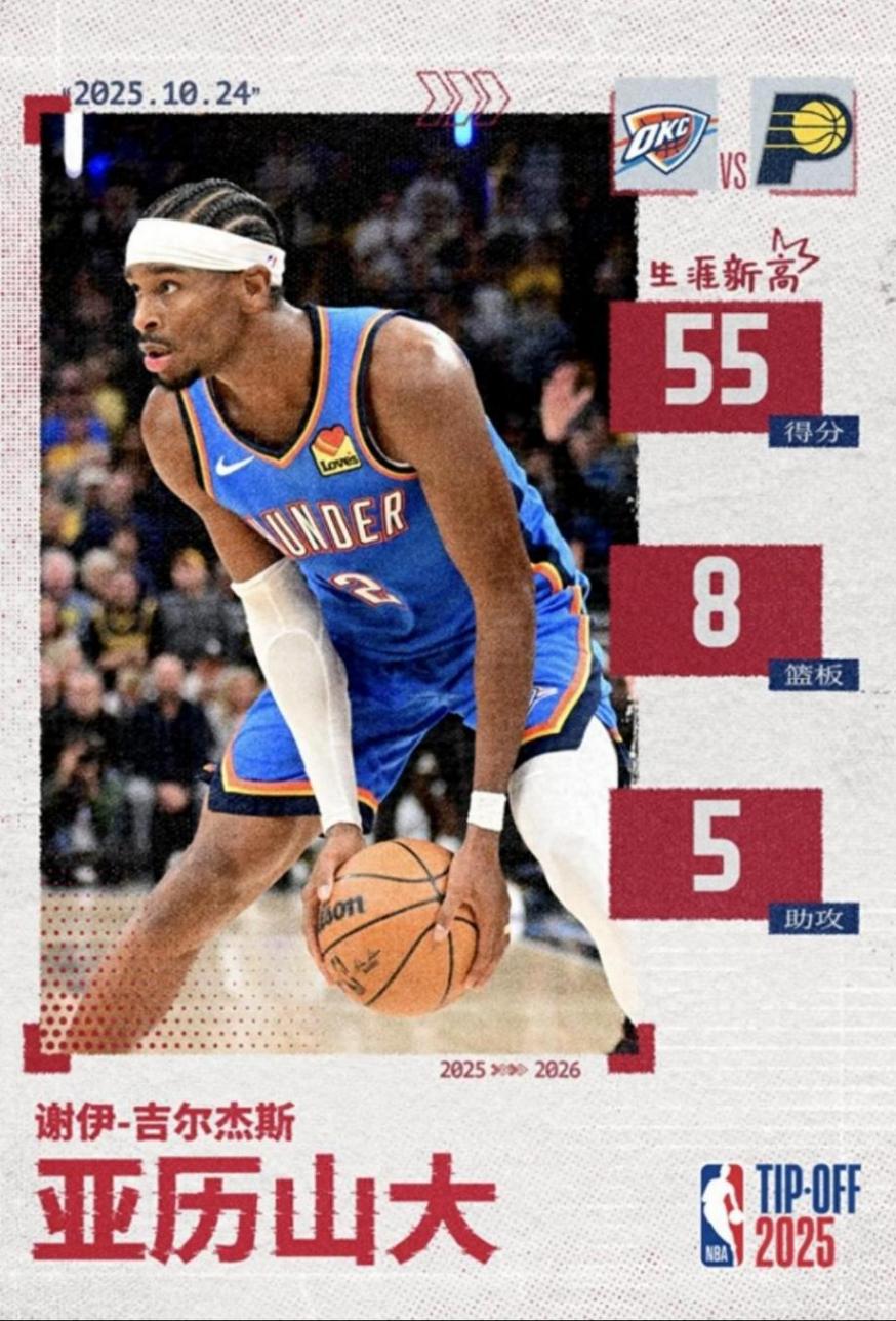京时间10月24日,雷霆经历两个加时赛,以141-135艰难战胜步行者,亚历山大本场比赛砍下55分8板5助,以127票获得mvp,有4个不争事实。