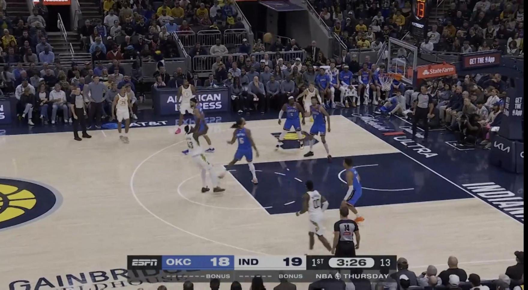 首节双方相互试探,多次投篮不中,开局两分钟后,才由雷霆队霍姆格伦运动战得分,马图林突破制造犯规,随后命中3分连得5分,随后双方你来我往,但双方命中率都不高,比分相差不大,本节结束22-25,步行者领先3分。