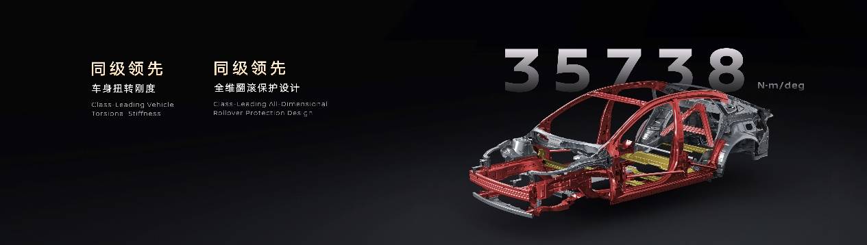 在被动安全方面,N6采用五横十纵超安全笼式车身、豪华车同款后排超高强钢A字型架构,车身扭转刚度达35738牛米/度,筑就守护家人的“钢铁脊梁”。