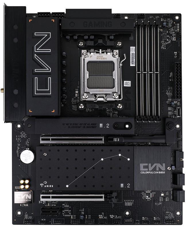 11 月 17 日消息,七彩虹本月推出了其首款 ATX 板型的 AMD B850 芯片组主板 —— CVN B850 GAMING PRO WIFI7 V14,这一型号采用相对低调的黑色外观设计。