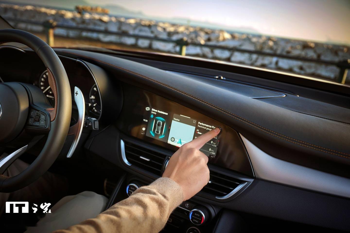 进入车内,Giulia Intensa 特别版的内饰同样展现了浓厚的运动氛围。新车配备了 12.3 英寸 TFT 屏幕,能够集中显示车辆的各项数据。中控台首次采用了红色碳纤维 3D 饰板,与外观的运动风格相呼应,营造出极具战斗感的驾驶舱环境。此外,音响升级成了总功率达到 900W 的 Harman / Kardon 剧院式 14 扬声器(含低音炮)音响系统。