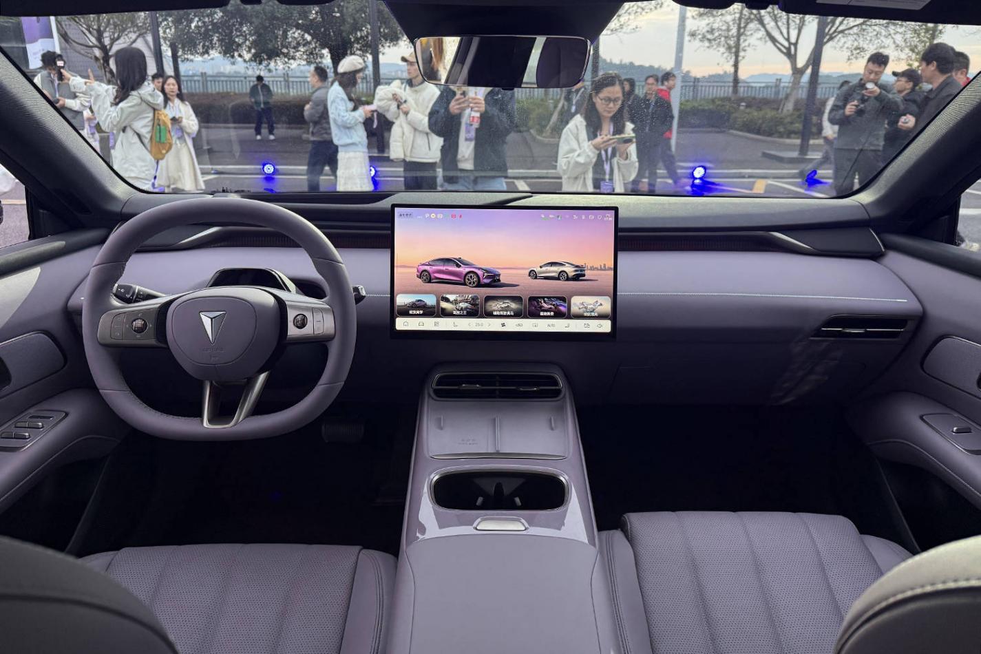 进入车内,深蓝L06采用经典的T字形布局,三幅式方向盘经过特别设计,配备滚轮和摁钮两种调节方式,操作便捷。中控台配备大尺寸显示屏,下方为空调出风口,整体设计简洁大方。新车还搭载了50英寸AR-HUD抬头显示系统,提升驾驶便利性。