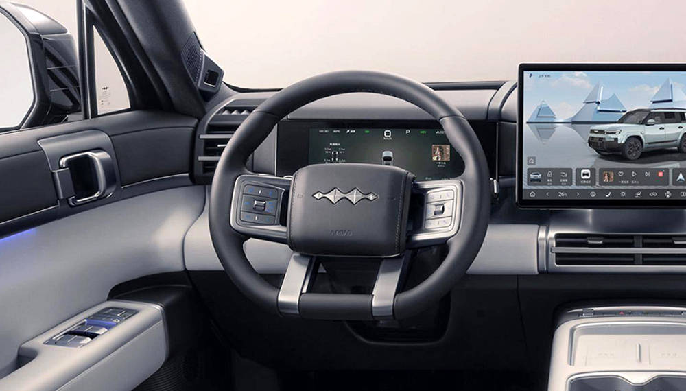 车内采用软质材料加以覆盖的方程豹钛7,内饰布局比较规整,车内的视野比较开阔,扁平化空调出风口,厚实的座椅,干净的中控台,温馨的氛围灯,以及融合了很多功能的中控大屏等,既显示出质感也注重实用性和科技感。